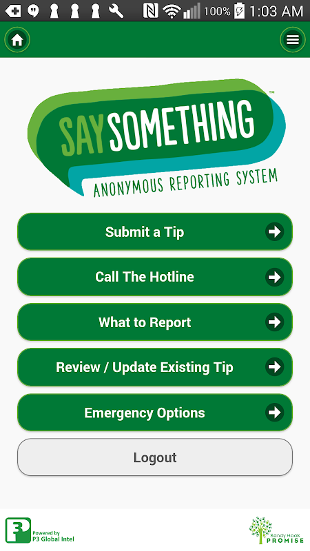 الرملي هوك وعد نقول شيء مجهول نظام الإبلاغ يتيح للطلاب وأولياء الأمور وأفراد المجتمع لتقديم المخاوف أمنا وسلامة مجهولة للمساعدة في التعرف والتدخل على الأفراد المعرضين للخطر قبل أن تؤذي نفسها أو غيرها. يتم تحميلها نصائحك مع إنتل آمن ليعيش وسط أزمة 24/7 حيث تدار جميع النصائح ذكرت حتى يتم حل هذه القضايا. ويمكن هذا النظام مديري المدارس وإنفاذ القانون لخلق التدخلات الفعالة والمساعدة في منع العنف، والانتحار، والترهيب، وإيذاء النفس وغير ذلك من أشكال السلوك التهديدي.