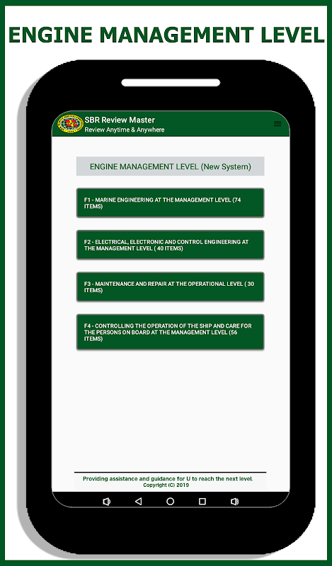 تطبيق المراجعة المحسّن حديثًا في وضع عدم الاتصال لشركة SBR Marine Services Corporation المخصص لضباط المحركات البحرية (مستوى الإدارة). إنه التطبيق المحدث والمنفصل عن تطبيق الجوال All Ranks Review Master السابق. المحتويات الآن مخصصة فقط لمستوى إدارة المحرك.