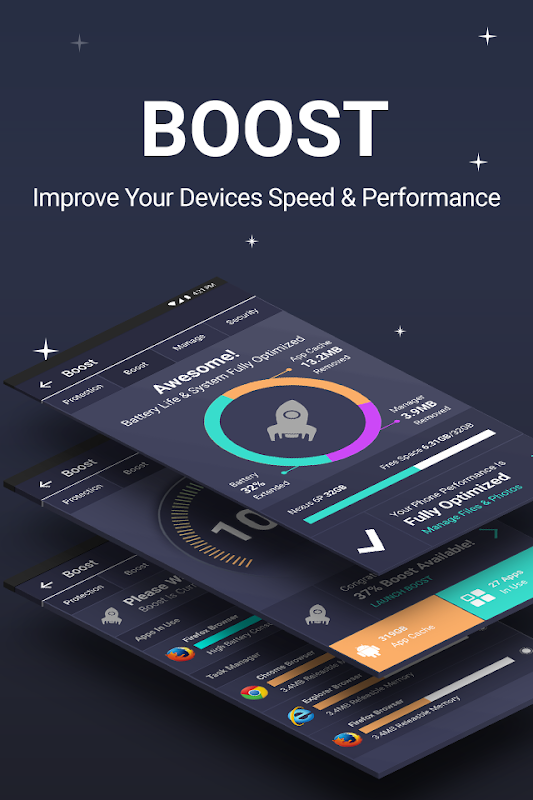 بالإضافة إلى الحفاظ على جهازك محميًا من البرامج الضارة ، فإن فحصنا سيحدد الذاكرة المهدورة ويحسن جهازك بنقرة واحدة ، من خلال غربلة الصور غير الضرورية والعمليات الزائدة ، يمكن لتطبيقنا تسريع جهازك بشكل كبير.