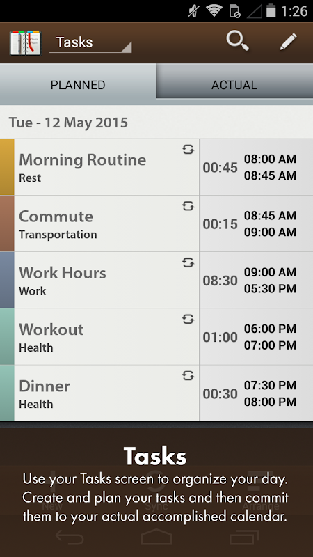 Creating new tasks is always simple to do, requiring only a few sequential steps to complete. Schedule Planner allows users to edit and change their individual tasks or by batch editing multiple tasks. Users can even create notes attached to each task if they need more details. Use our PLANNED vs ACTUAL task tracking functions to commit a task as being accomplish to chart your schedule accurately. See these results on the statistics screen.