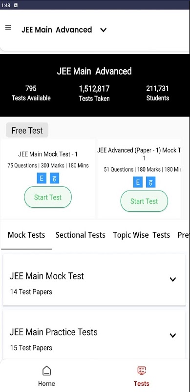 داخل التطبيق، يمكنك تجربة اختبارات وهمية ومراقبة التقدم والوصول إلى التقارير والحلول الشاملة.