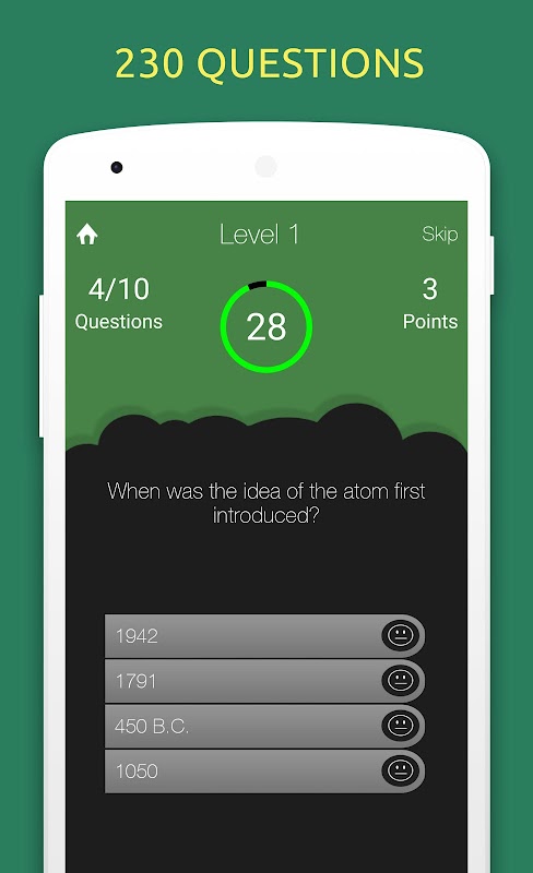 مسابقة مع 230 الأسئلة التافهة والحقائق حول العلم