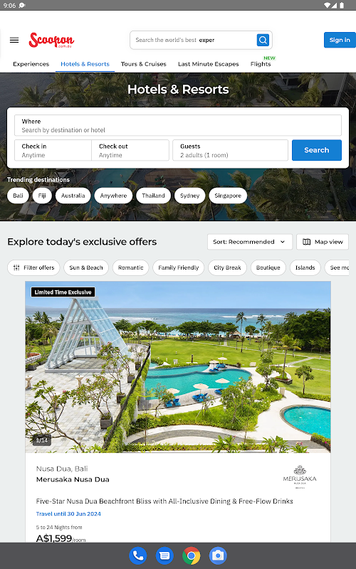 Scoopon هي وجهتك المفضلة للحصول على أفضل التجارب في المنزل أو في الخارج. احصل على وصول حصري إلى مجموعتنا الضخمة من العروض ، مع خصم يصل إلى 50٪ على أفضل الرحلات والتجارب. تحقق مرة أخرى للعروض الجديدة المضافة يوميا!