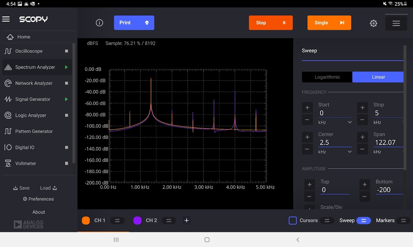 برنامج محمول راسم الذبذبات ومجموعة أدوات تحليل الإشارات