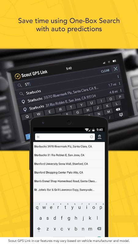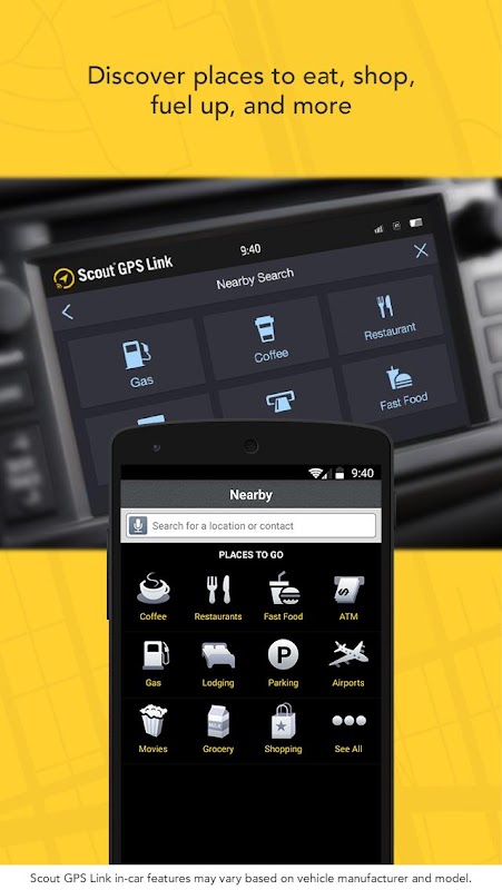 Scout GPS Link هو تطبيق ملاحة مجاني للهاتف المحمول مع وضع MapStream ™ ، تجربة تنقل كاملة مع خرائط تفاعلية متحركة مدعومة بمعلومات سحابية في الوقت الحقيقي ومصممة حصريًا لشاشة الوسائط المتعددة في سيارتك. سواء كنت في طريقك إلى المنزل ، أو تبحث عن مكان للحصول على الوقود ، أو تريد التغلب على حركة المرور ، احصل على جميع المعلومات التي تحتاجها في لمحة على شاشتك الرئيسية المخصصة. أينما تذهب ، يجعل Scout GPS Link التنقل هناك أسهل كثيرًا.