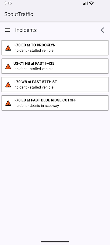 يوفر كانساس سيتي الكشفية التطبيق مرور الركاب والمسافرين مع إمكانية الوصول إلى المعلومات المتنقلة لكانساس سيتي الطرق المترو منطقة من المدينة الكشفية في كانساس من نظام النقل الذكي النقل في (ITS). المعلومات المتوفرة تشمل ما يلي:
