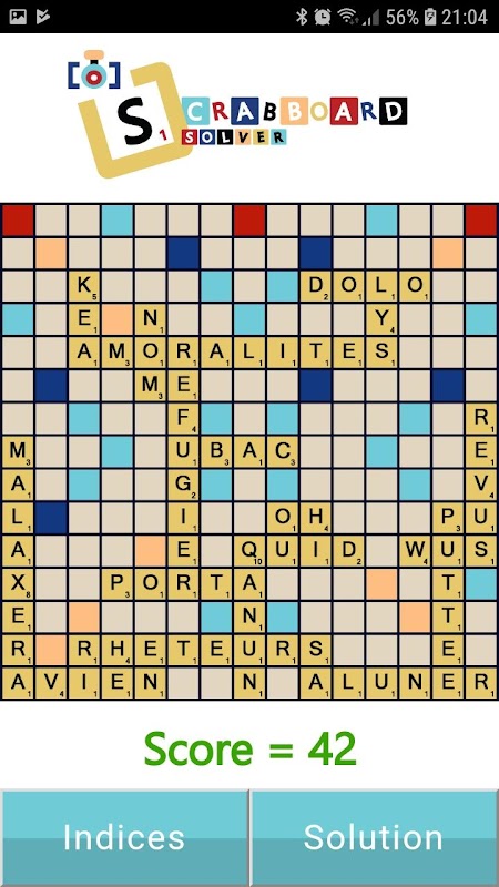 Scrabboard Solver هو الحل النهائي لـ Scrabble: اكتشف اللوحة الخاصة بك عبر الصورة أو لقطة الشاشة، واعثر على أفضل الكلمات والغش في اللعب الفردي أو المتعدد.