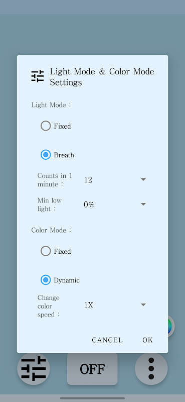 - ضوء التنفس: يضبط السطوع ديناميكيًا بتردد محدد.