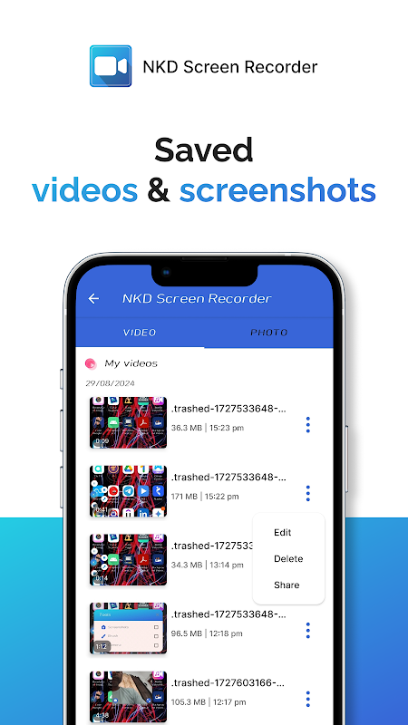 مع مسجل شاشة NKD، ستحصلون على تطبيق قوي لتسجيل الشاشة يجمع بين التسجيل عالي الدقة، وأدوات التحرير، وكاميرا الوجه، وتسجيل الصوت، والتقاط شاشة غير محدود.