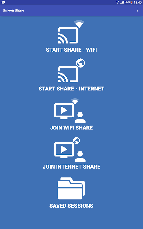 To join screen share, select wifi or internet option from the main menu. Then your going to see a list of available screen sharing sessions. Select the one your friend or collegue created and wait for the host to start the session.