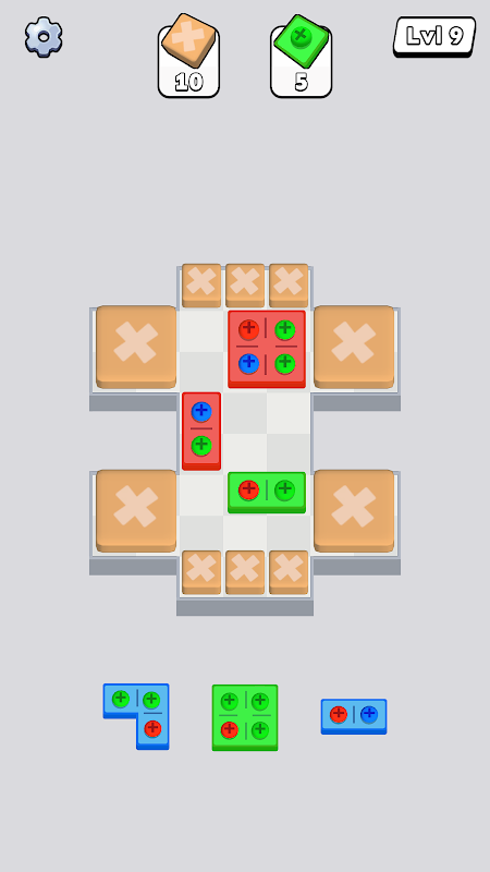 أثناء اللعب، سيتم تبديل البراغي الموجودة على القطع المجاورة ومحاولة مطابقة ألوانها. عندما تجمع القطعة ما يكفي من البراغي المطابقة، فإنها تكمل نفسها وتختفي، مما يوفر مساحة لقطع جديدة. لكن احذر، إذا امتلأت اللوحة، فستنتهي اللعبة! يختبر كل مستوى مهاراتك في التخطيط وحل المشكلات أثناء العمل على إكمال عدد محدد من القطع قبل نفاد المساحة.