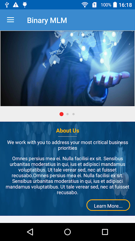 تطبيق Binary MLM Android الخاص بنا مخصص فقط للعملاء المهتمين بشراء تطبيقات الهاتف المحمول الخاصة بنا. إنه تطبيق إصدار تجريبي يتيح لعملائنا التعرف على منتجنا البرمجي.