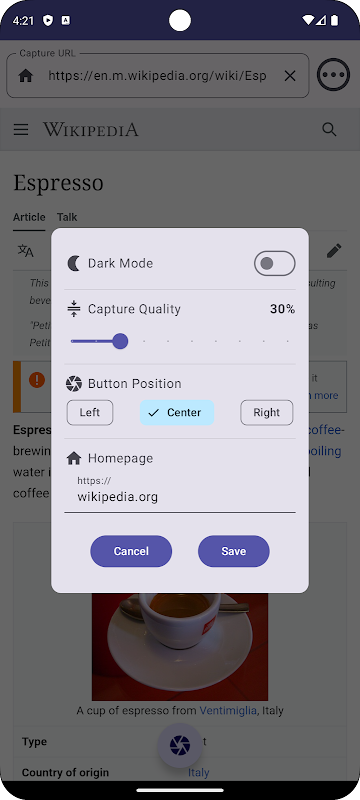 التقِ بكل محتويات الويب الخاصة بك في صورة واحدة مع "Scroll Capture"، تطبيق مبتكر يسمح لك بالتقاط صفحة ويب كاملة في لقطة واحدة متواصلة. تنقل داخل أي صفحة ويب من خلال مشاهد الويب المدمجة بالتطبيق دون الحاجة إلى إجراءات معقدة. يتولى "Scroll Capture" الباقي، مضمونًا عدم تفويت أي تفصيل من خلال تحويل محتوى التمرير لصفحة الويب بسلاسة إلى ملف صورة واحد.