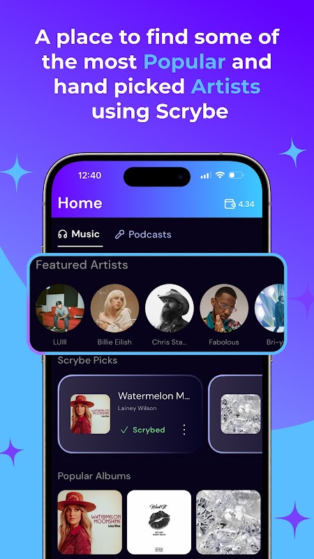 اكتشفوا كتالوجات حصرية، وادعموا الأصوات التي تهمكم، واستكشفوا منصة مصممة لكل من المعجبين والمبدعين. مع Scrybe، لن تدفعوا ثمن ملايين الأغاني التي لن تسمعوها أبداً، بل ستشتركون في الموسيقى والبودكاست التي تهمكم حقاً.