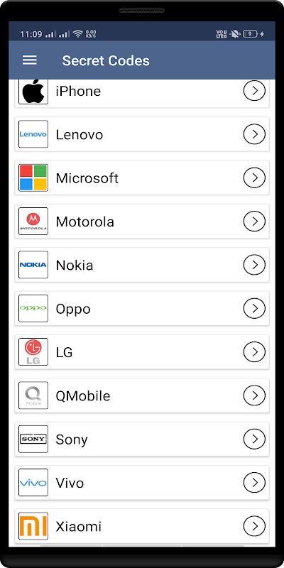 Secret Code application is the one of the best android secret code app. Using Secret Codes application you can access the hidden features of your device. Android devices have a lots of hidden information, its seems difficult to find and access. Secret Code application include the secret codes of all mobile device like Samsung, Sony, Lenovo, Motorola, XIAOMI/MI, BlackBerry, China, HTC, Karbonn, LG, MicroSoft/Windows and OPPO.