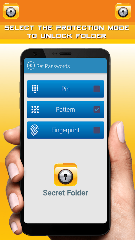 🔐 Select the protection mode – fingerprint, lock pattern or enter pin to unlock folder.