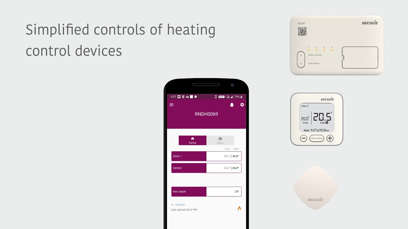 إنه يعمل مع شاشات ترموستات قابلة للبرمجة Secure C1727 و H3747 وأجهزة استشعار درجة الحرارة. أثناء تواجدك في المنزل ، باستخدام تطبيق Secure Controls ، ستتمكن من التحكم في الحرارة والماء الساخن من مقعدك المريح. لا يحتاج إلى أي اتصال بالإنترنت. عند إضافة ملف