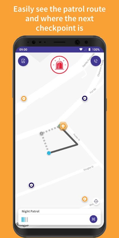 - الوصول بسهولة إلى الخريطة و / أو عرض مخطط الطابق لمسارات الدوريات المخصصة لهم.