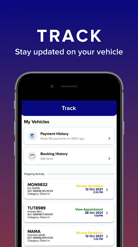 تتبع سجلات المركبات وصيانتها وامتلاكها ، كل ذلك بلمسة من هاتفك.
