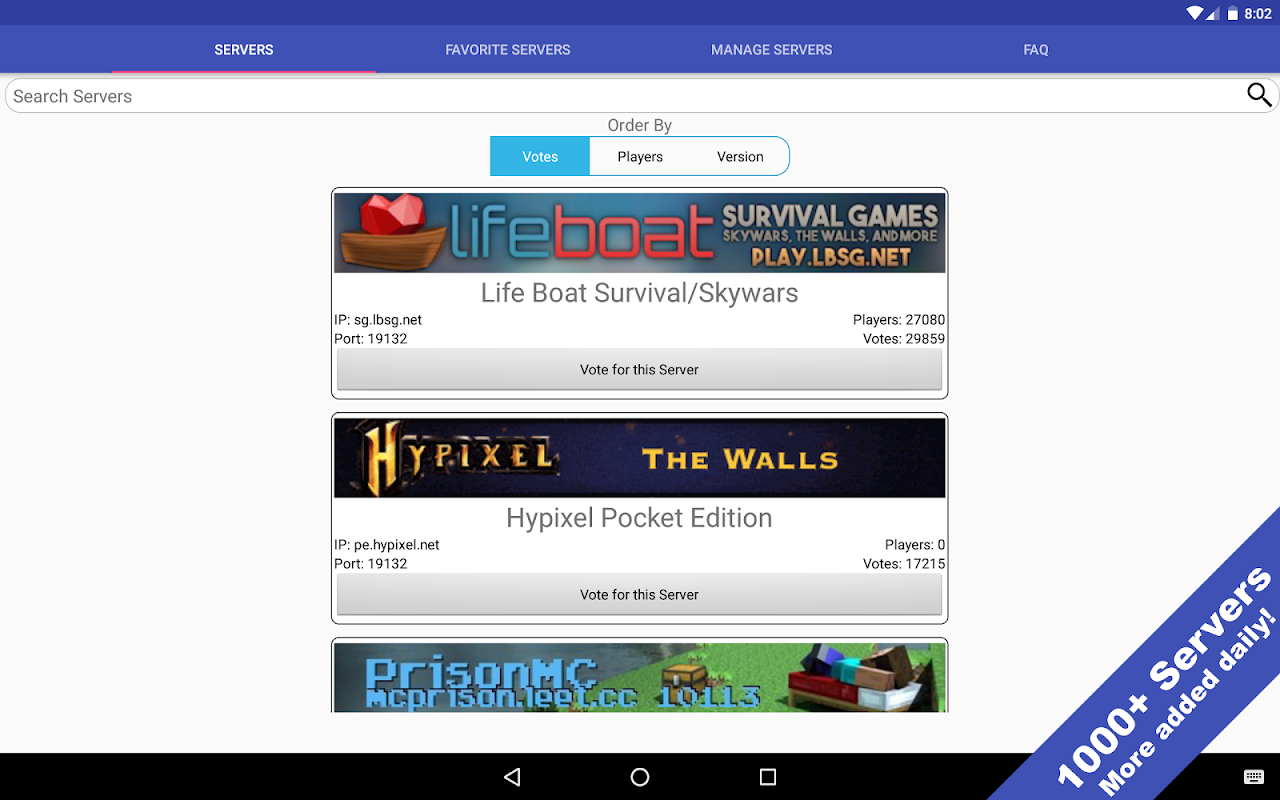 خوادم يمكن أن تتم تصفيته من قبل أي كمية من الأصوات التي حصلوا عن طريق هذا التطبيق أو عن طريق كمية من اللاعبين الذين يلعبون حاليا هناك.
