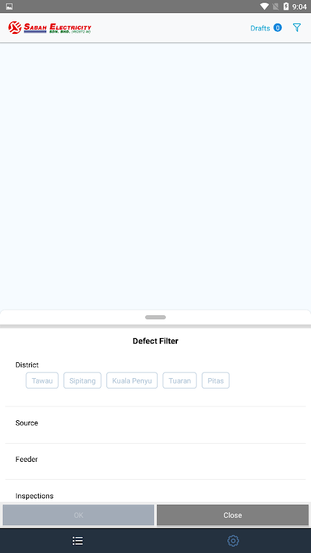 يستخدم هذا التطبيق لتحديث صيانة SESB CBM في الموقع.