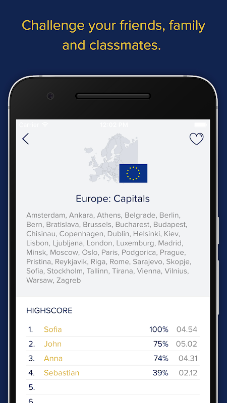 من السهل تحدي الأصدقاء وزملاء الدراسة وأفراد الأسرة في منافسة وجهاً لوجه باستخدام Seterra. يمنح هذا التطبيق مسابقات التوافه دورة جديدة ويجعل لعبة الأسرة الصخرية الليلية. يمكن للمدرسين إعادة الاجتماعية إلى الدراسات الاجتماعية من خلال مباريات Geo Bee الحية. هناك مجموعة متنوعة من المحتوى بعمق كافٍ لتحدي أكثر كلاب الصيد صعوبة أو صعوبة كافية لإثبات أنك أذكى من طالب بالصف الخامس.