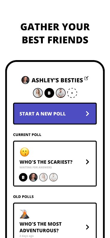 هذا هو المكان الوحيد لأفضل أصدقائك. اجمعهم وابدأ استطلاعًا ممتعًا كل يوم. كشف الأسرار بين مجموعتك.
