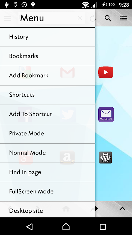 Shadow Browser has a shortcut where you can keep list of websites which you visit frequently.It also has shortcut icon on the home screen which provides quick access to history,bookmarks.