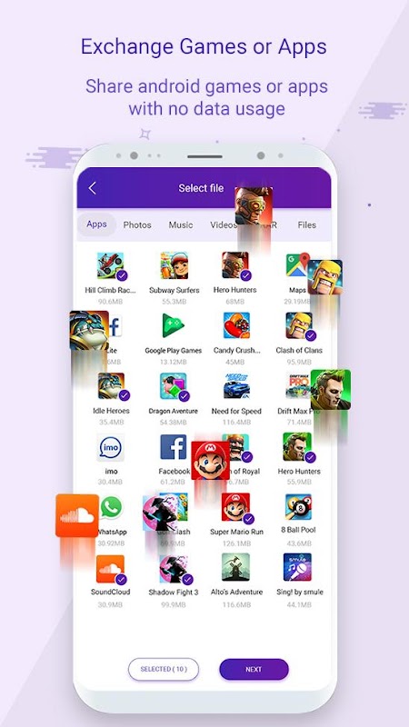 Share or tranfer your faviorte installed apps and games with friends and family.