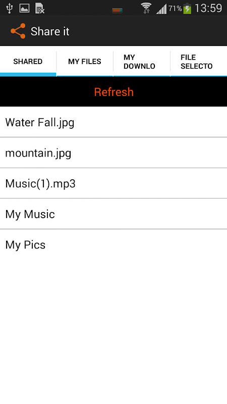 2.In علامة التبويب ملف محدد يمكنك تحديد أي ملف أو المجلد الذي تريد مشاركته وبمجرد جعل اختيارك التطبيق سوف نشارك في الملفات التي قمت باختيارها تلقائيا.