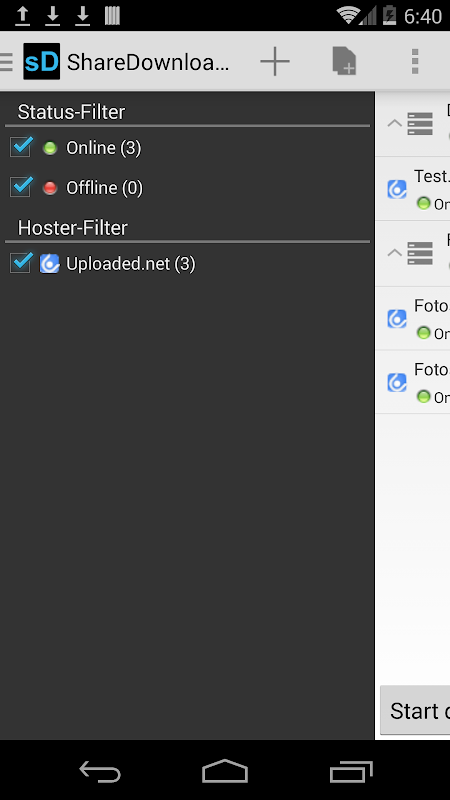 ShareDownloader is a new Android app, which combines the various 1-click-hosters in one app. Share Downloader offers among other things, like file-, download- and upload-manager. Further accountinformation can be requested over the app, suchas points, credit, traffic etc. Share Downloader can also decrypt and process DLC - Container. The download manager will resume the downloads after a connection crash automatically or waits as long as WLAN is not available. Of course you can process usual HTTP-downloads with ShareDownloader.