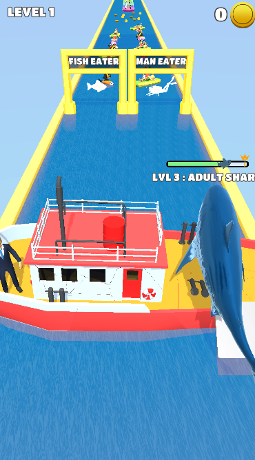 مرر إصبعك لتوجيه القرش للتطور من خلال التمسك بالتحديد الذي تم إجراؤه في البداية