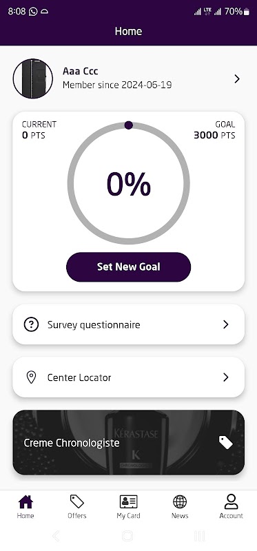 برنامج الولاء؛ سيتيح لك ذلك تتبع النقاط المتراكمة على بطاقة الولاء المميزة الخاصة بك عند تسجيل الدخول/التسجيل.