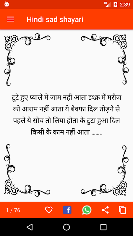It also has Hindi Sms, Shayri In Hindi with collections from Sher Shayari, Romantic Shayari On Love, you can also enjoy Hindi Me Shayari or Shayari Hindi Mai. It is store for Best Love Shayari, Sad Sms In Hindi and New Hindi Shayari.