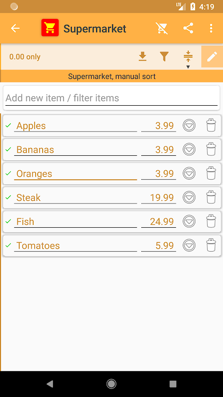 • بسهولة فرز العناصر الخاصة بك يدويا مع السحب والإفلات ، مما يعكس الترتيب الذي تجده في المتجر! لا مزيد من التمرير من خلال القوائم ، والتسوق بسيطة وسهلة "من أعلى إلى أسفل"!