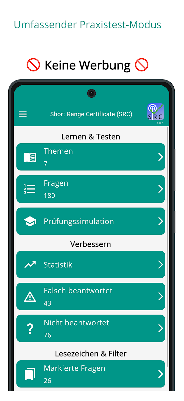 أفضل استعداد لاجتياز امتحان شهادة الاتصالات اللاسلكية قصيرة المدى (SRC) الرسمي - مع برنامج تعليمي حائز على جوائز لتعلم سريع ومركّز.
