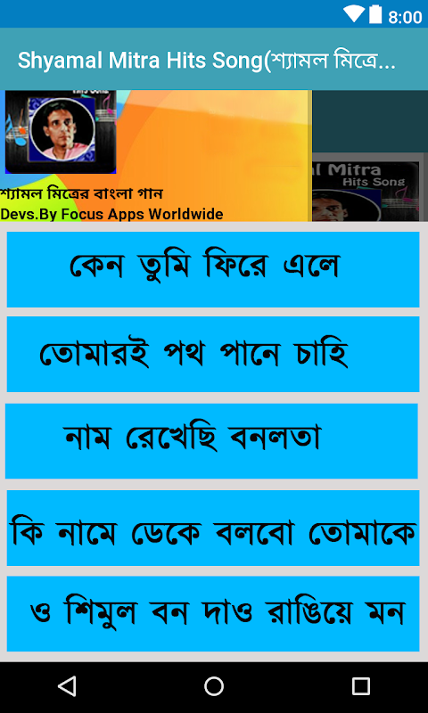 This application is arranged by popularizing the popular songs of Bengali Shyamal Mitra.