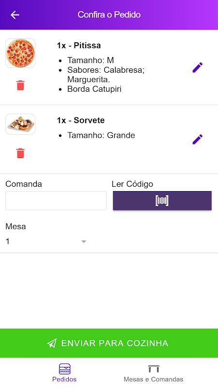 Gerenciamento de comandas, mesas, encomendas e tele entregas.