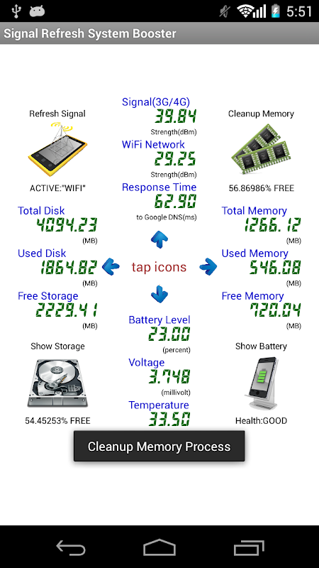 (2) هذا هو قوة إشارة 3G / 4G / LTE / واي فاي، وقياس سرعة شبكة الاتصالات في الوقت الحقيقي.