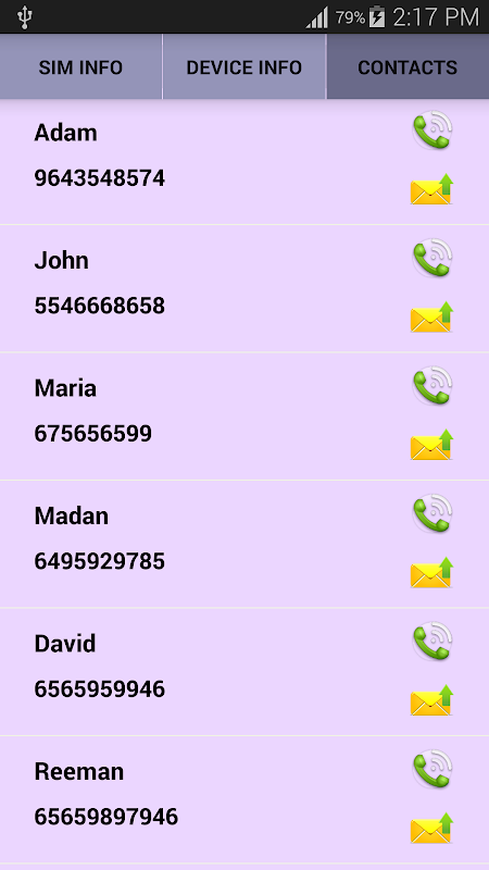 Sim Contacts: List of Contacts stored in SIM