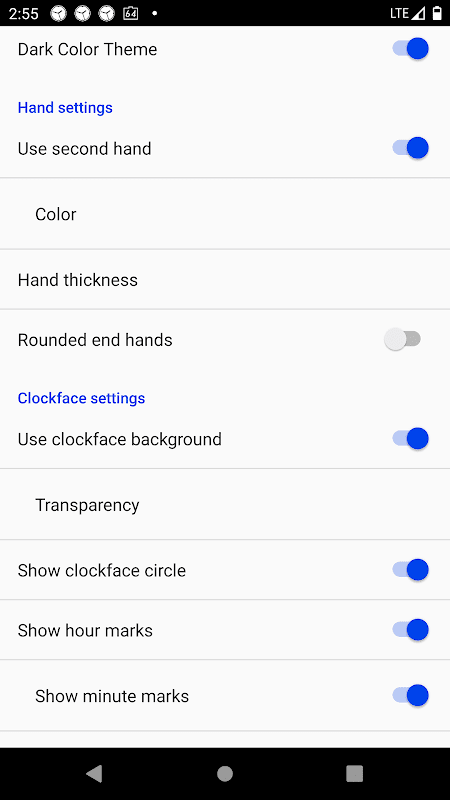 - استخدام خلفية واجهة الساعة وتغيير شفافيتها