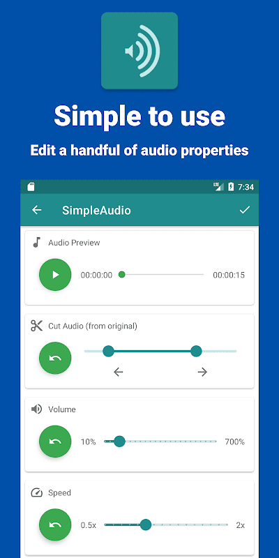 باستخدام إمكانيات التحرير في SimpleAudio ، يمكنك بسهولة تحرير أي نوع من الملفات الصوتية وتصديرها إلى تطبيقات أخرى أو حفظها على وحدة تخزين جهازك.