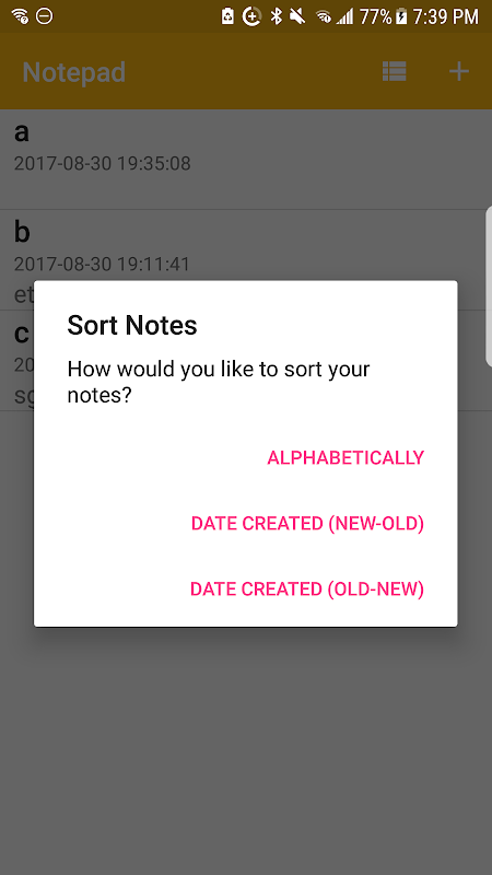 Improved toolbar icons. New ability to sort notes alphabetically or by date created to allow for an easier location of previous notes.