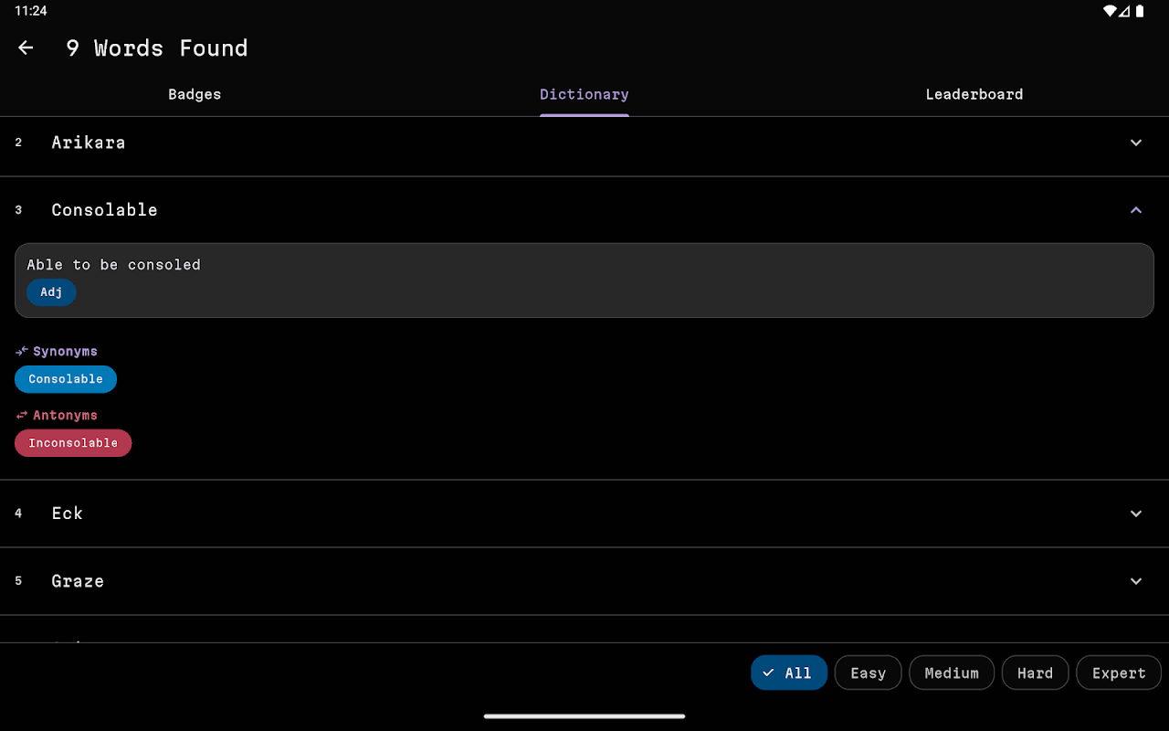 بدّل الأحرف لاكتشاف الكلمة المخفية، مستخدمًا التعريف المُقدّم كدليل. لعبة خلط بسيط، مثالية لجميع الأعمار، طريقة رائعة لتحسين مفرداتك ومهاراتك في حل المشكلات مع الاستمتاع. مع آلاف الكلمات، وشارات مجزية، وواجهة أنيقة وسهلة الاستخدام، ستستمتع لساعات!