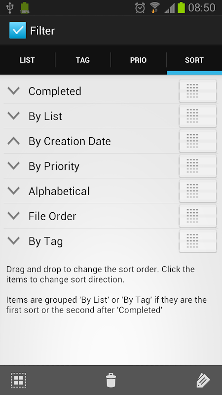 - Share the complete tasklist or selected tasks using the Android share feature