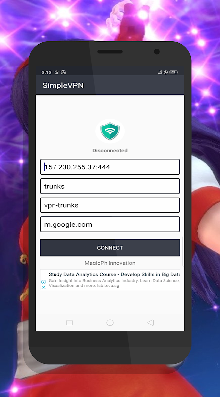 Simple VPN secures your Android device’s connection while you’re connected to public WiFi hotspots or cellular data networks. It works just like a very easily Tor proxy (the Onion Router) but it’s even more secure. Your password and your personal data are secured and you are protected from hacker attacks.