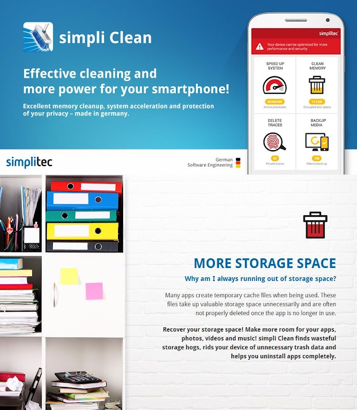Is your phone or tablet too slow? Are you running out of hard drive space or need to back up your mobile photos? simpli Clean offers powerful features to clean and optimize your Android device as well as protection of your privacy.