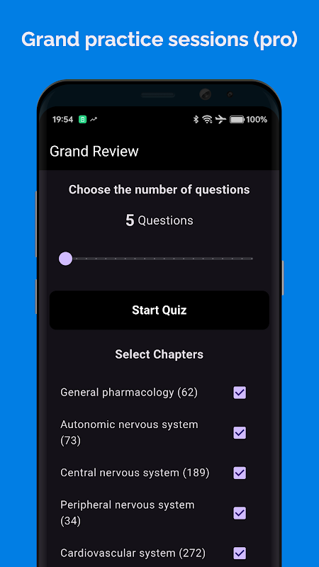 - جلسات التدريب الكبرى: اختر عدد الأسئلة واختبر معلوماتك في علم الصيدلة بأكمله