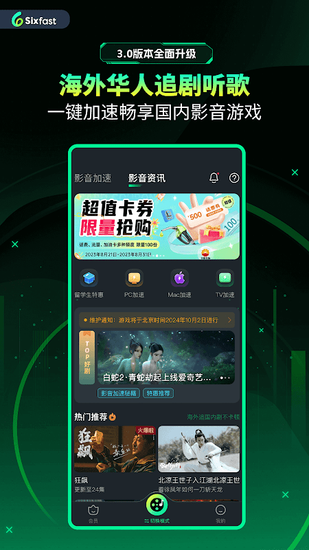 Sixfast-海外华人留学生回国看剧听歌玩游戏看比赛 3.11.0
