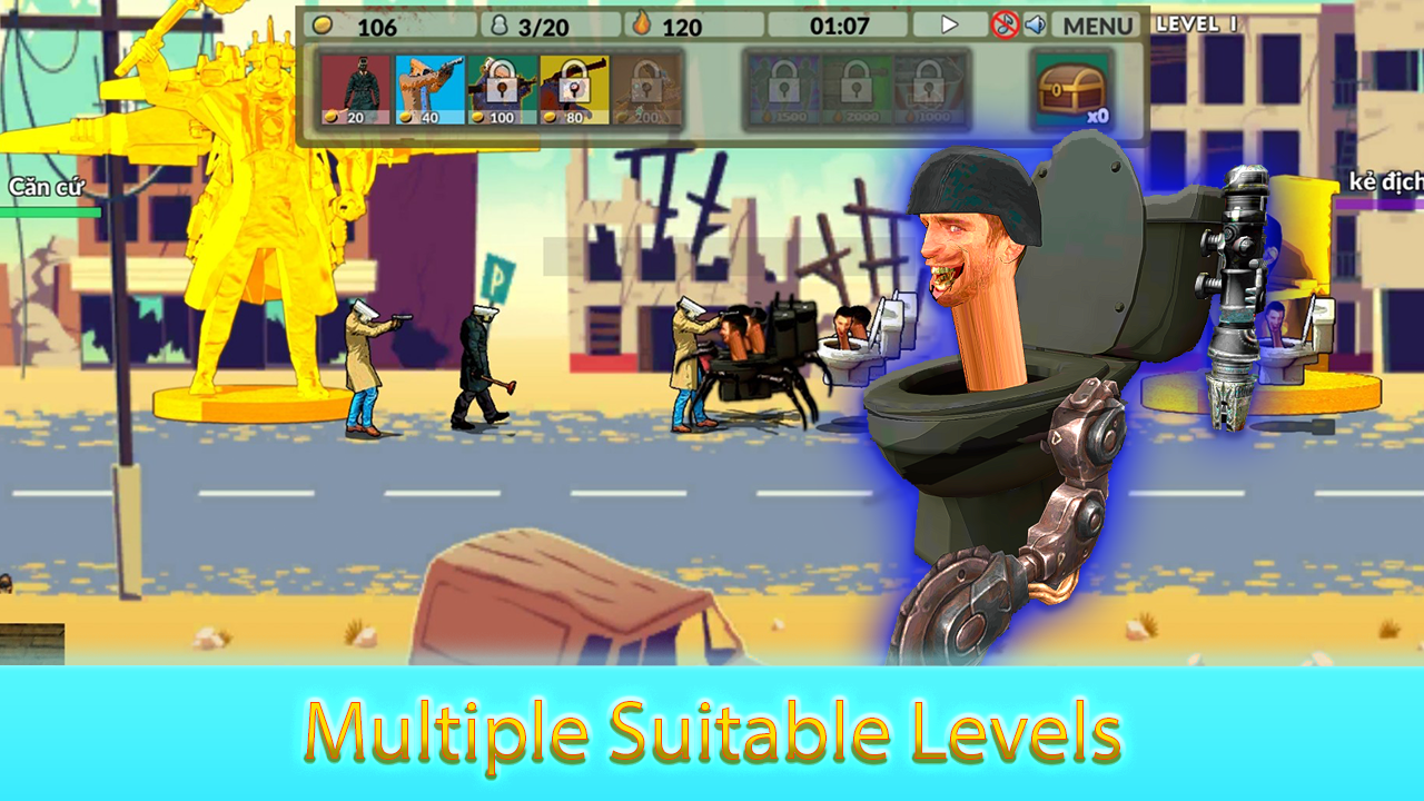 🎮 هذه لعبة استراتيجية. تتميز اللعبة بشخصيات SKIBIDI TOILET vs. CAMERA MAN. إنها تجربة مرعبة للغاية ولكنها مثيرة لا يمكنك تجربتها إلا عند لعب هذه اللعبة.
